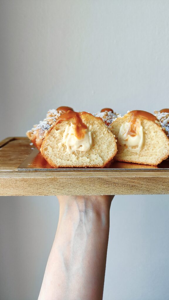 - Dès que vos brioches sont refroidies, garnissez-les avec un peu de crème à flan dans chacune des brioches.