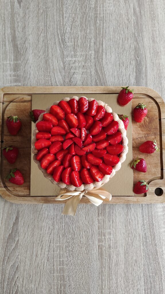 • Décorez votre charlotte avec de belles fraises équeutées (ou comme vous le souhaitez).