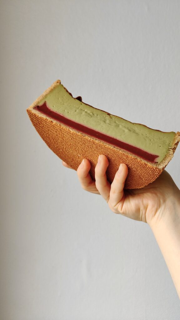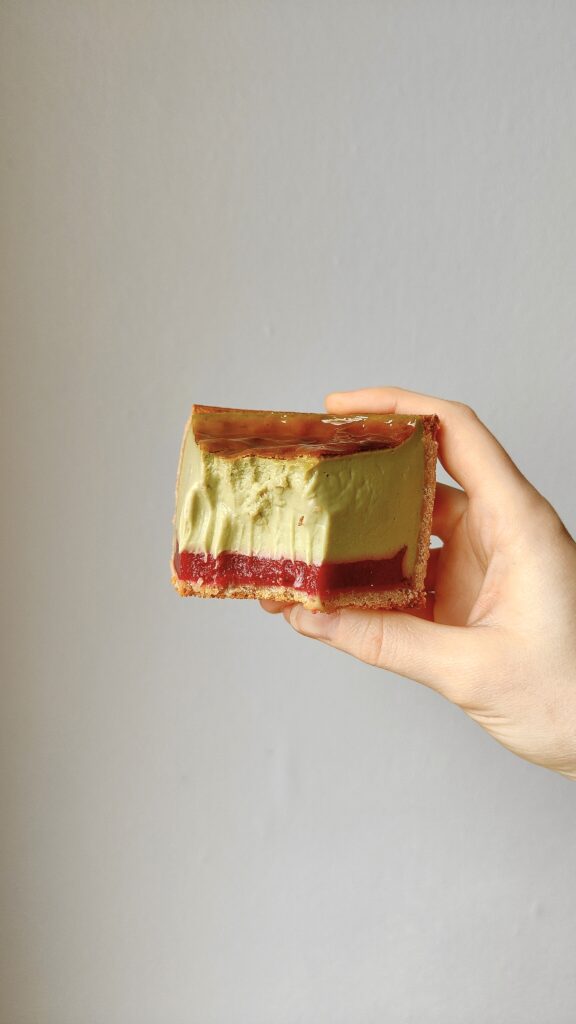 • J’utilise un matcha de grade culinaire, car il est spécialement conçu pour les pâtisseries, glaces et autres préparations sucrées. Son goût est plus intense et légèrement plus amer que celui du matcha de grade cérémonial, ce qui lui permet de ne pas se faire oublier une fois mélangé à d’autres ingrédients. Le matcha culinaire tient bien la route et permet d’obtenir une couleur et un parfum bien présents et sans gaspiller du matcha de qualité supérieure réservé aux dégustations pures.