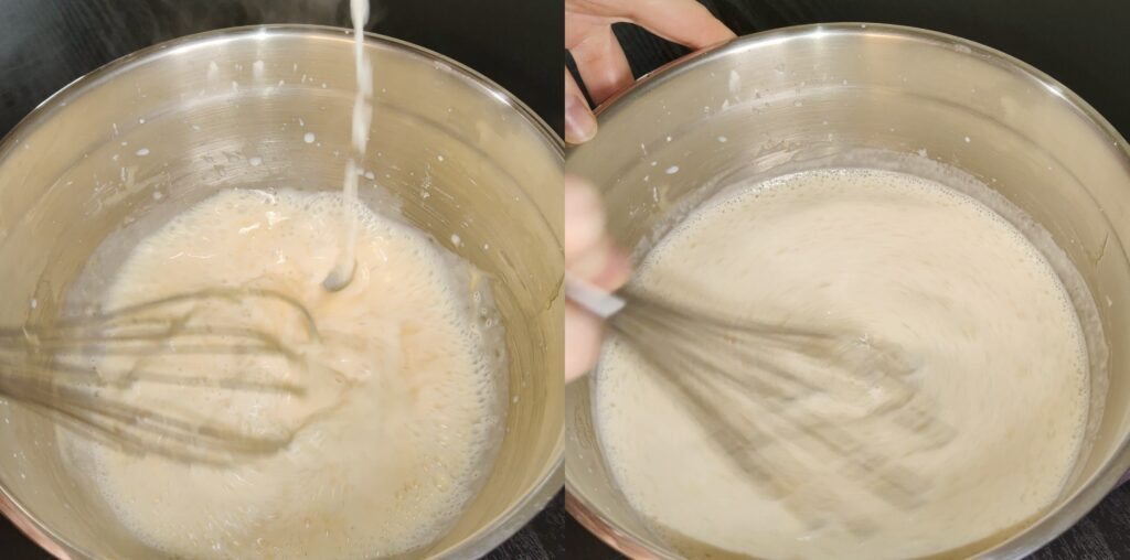 - Quand l’appareil est cuit, il redevient un peu plus liquide (c’est normal).