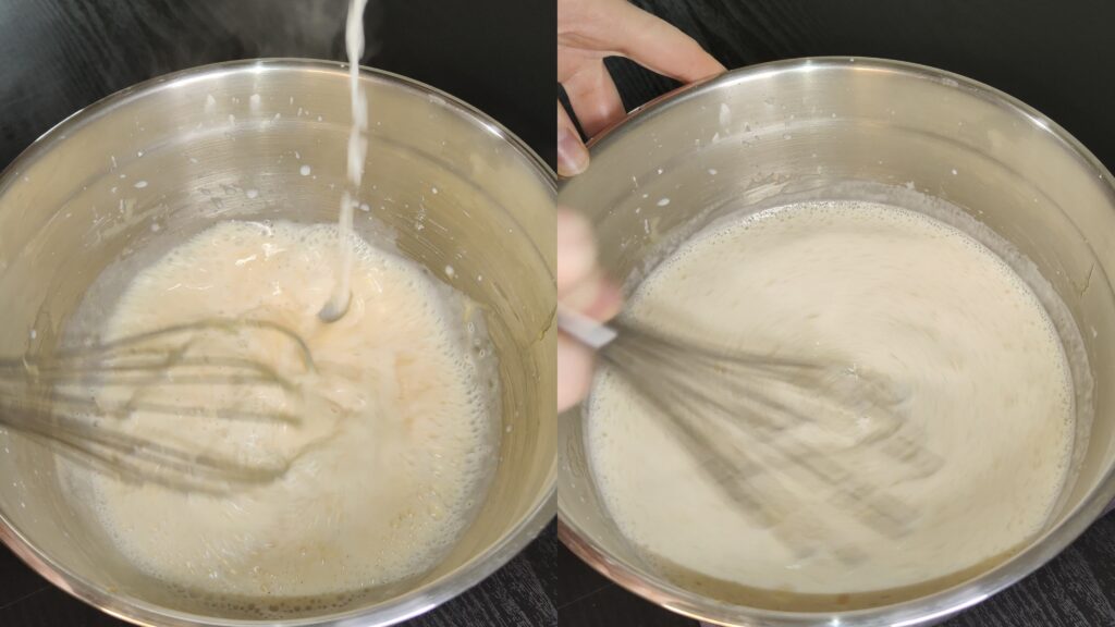 - Quand l’appareil est cuit, il redevient un peu plus liquide (c’est normal).