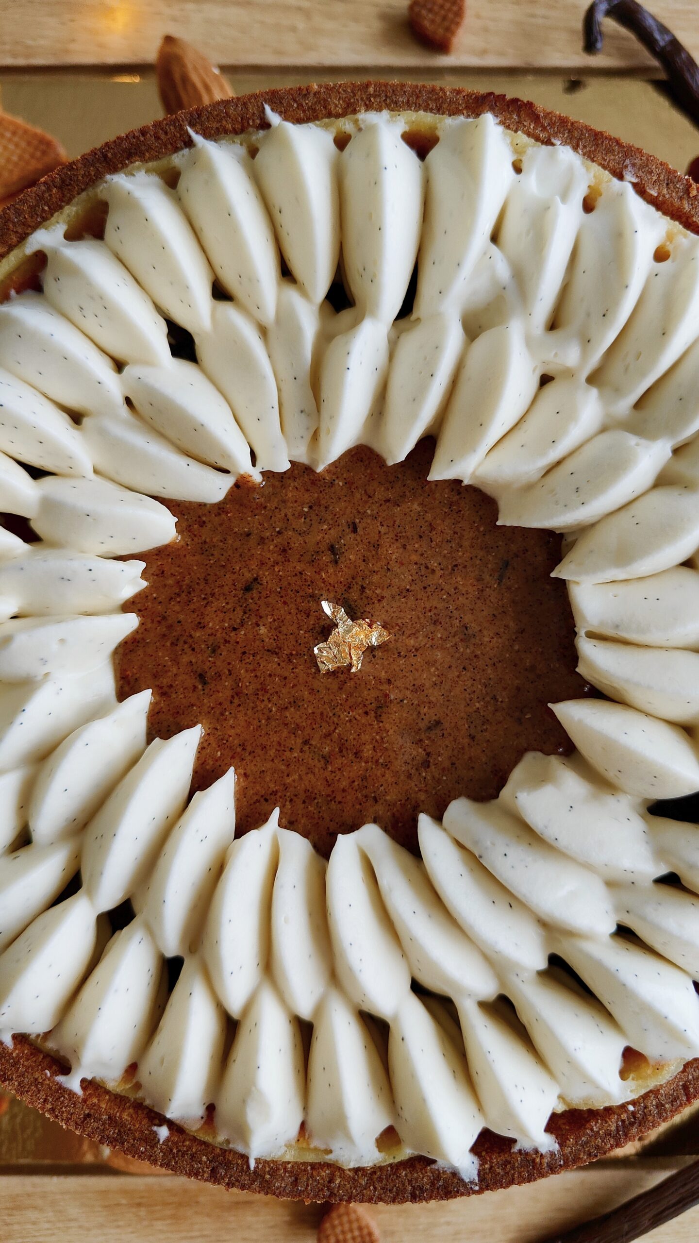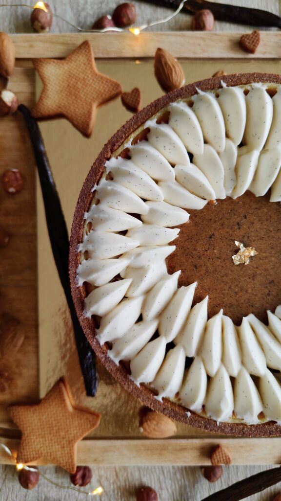 Un petit flan pour la dernière recette de l'année 2025 !Une pâte sucrée vergeoise et à la poudre de vanille, un appareil à flan vanille bien crémeux, un praliné à la vanille et une petite ganache montée à la vanille, légère et onctueuse.Vous l'aurez compris : un flan intensément vanille !