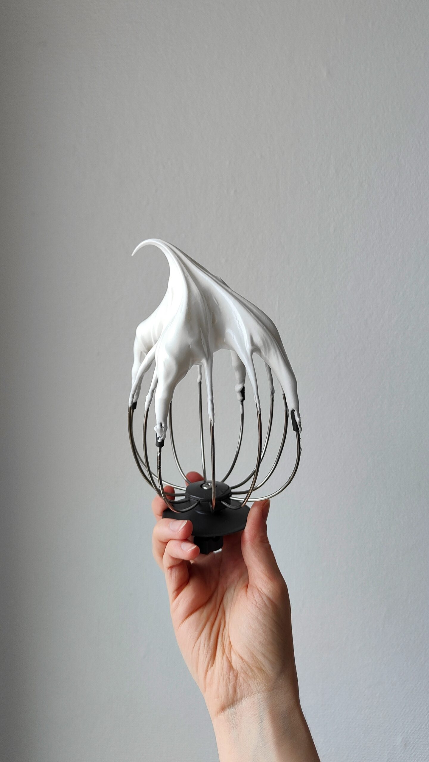• Une fois le sirop à bonne température, versez-le délicatement en un long filet contre les parois du bol, toujours à vitesse rapide.