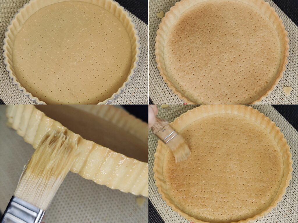• À l'aide d'un pinceau, appliquez votre dorure sur le fond de tarte refroidi ainsi que les bords.