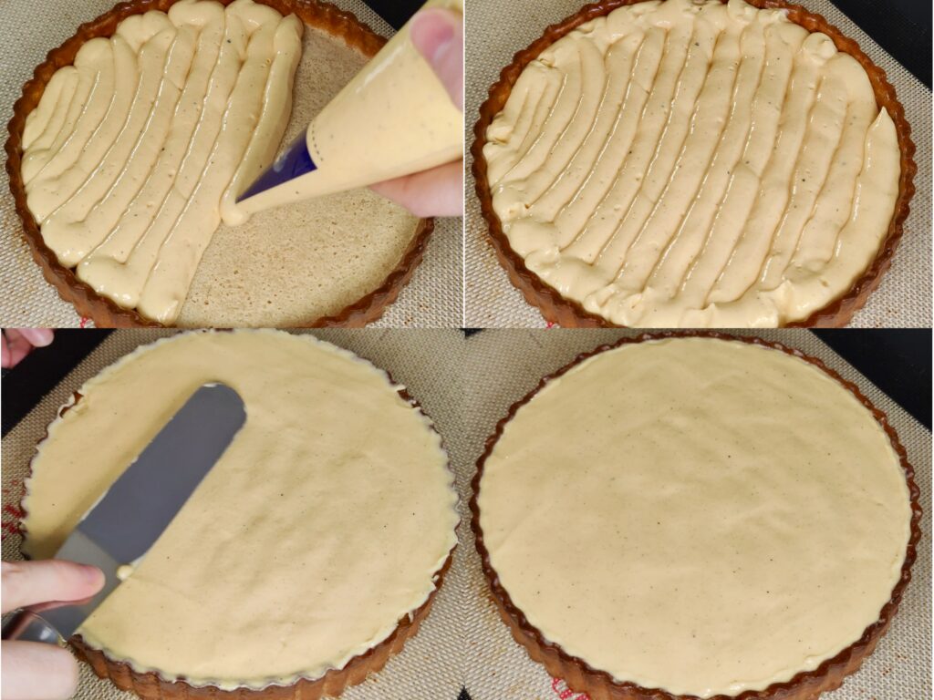 • Etalez la crème dans le fond de votre tarte refroidie jusqu'à mi-hauteur.