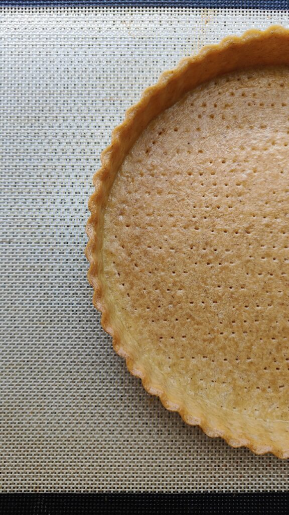 - Congeler et piquer le fond de tarte avant permet à la pâte de ne pas bouger, ni gonfler pendant la cuisson. Avec cette technique, je n’utilise pas de billes de cuisson pour cuire mes fonds de tarte.