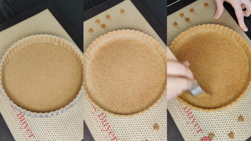 - À l'aide d'un pinceau, appliquez votre dorure sur le fond de tarte refroidi ainsi que les bords.