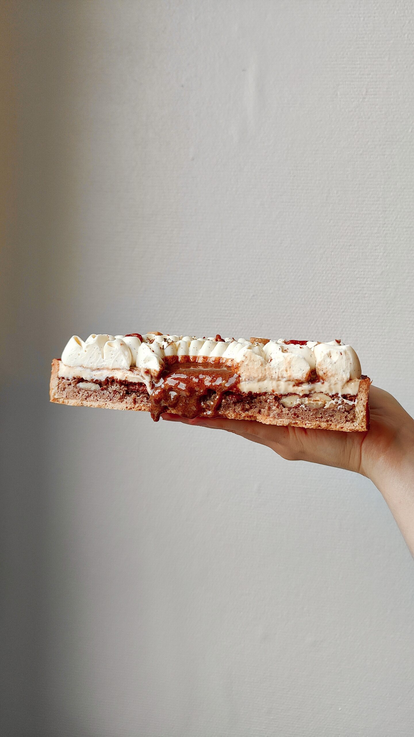 Une tarte vanille-pécan à la fois fondante, onctueuse, croquante, croustillante et pleine de douceur !Sous cette légère ganache montée à la vanille se cachent un crémeux vanille, un croustillant praliné pécan et une crème de noix de pécan, le tout dans une pâte sucrée vanille bien dorée. Sans oublier ce coeur coulant praliné pécan… 🤎