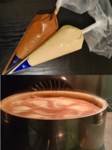 Procédez de la même manière pour la version cacao, en mettant la poudre de cacao avec tous les ingrédients, sauf l'oeuf.
