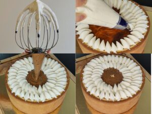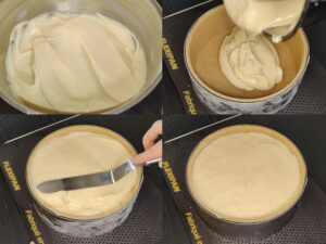Beurrez légèrement les parois du cercle, placez vos bandes de papier cuisson (ou votre bande de silpain) et déposez-le sur une plaque recouverte d'une feuille de papier sulfurisé ou d'un tapis de cuisson.