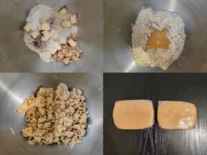 Quand la pâte commence à se former, déposez-la sur votre plan de travail et fraisez-la afin de bien amalgamer le tout. Façonnez un pâton.