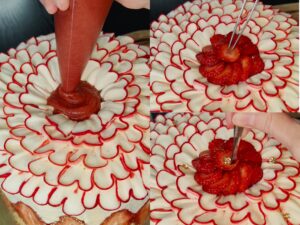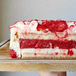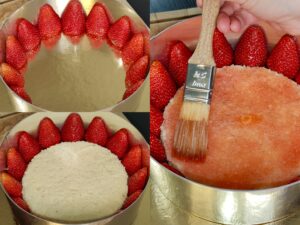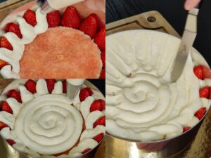 Mot-clé Confit de fraises, Crème diplomate vanille, Fraise, Fraisier, Ganache montée vanille, Génoise zeste de citron, Morceaux de fraises, Sirop d'imbibage fraise citron