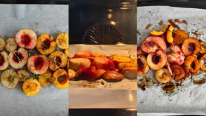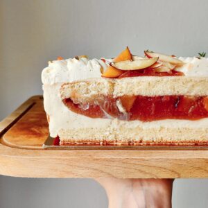 Mot-clé Confit pêche-nectarine, Crème diplomate, Ganache montée vanille, Génoise, Nectarine jaune, Nectarines rôties, Nectarinier, Pêche blanche, Pêcher, Pêches rôties, Thym, Vanille