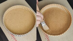 Préchauffez votre four à 160°C, chaleur tournante.Enfournez pendant 15min. À la sortie du four, retirez le cercle sans vous brûler et laissez refroidir. Mélangez le jaune d'oeuf avec la crème liquide. À l'aide d'un pinceau, appliquez votre dorure sur le fond de tarte refroidi ainsi que les bords.