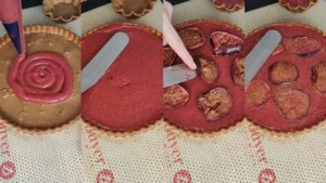 Beurrez légèrement les parois du cercle, placez vos bandes de papier cuisson (ou votre bande de silpain) et déposez-le sur une plaque recouverte d'une feuille de papier sulfurisé ou d'un tapis de cuisson.