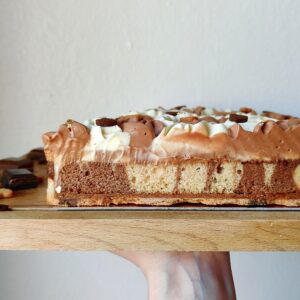 Mot-clé Biscuit madeleine marbré, Chocolat, Crémeux chocolat, Crémeux vanille, Croustillant praliné, Ganache montée chocolat au lait, Ganache montée vanille, Pâte sucrée, Tarte, Tarte chocolat vanille, Tarte marbrée, Vanille