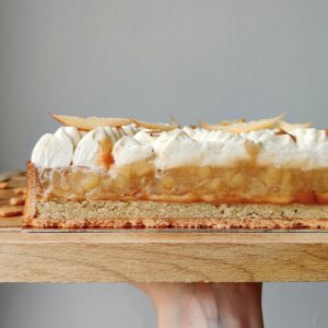 Mot-clé Brunoise de pomme, Caramel onctueux, Confit de pommes, Crème d'amande, Ganache montée vanille, Pâte sucrée amande, Pomme, Tarte, Tarte aux pommes, Vanille